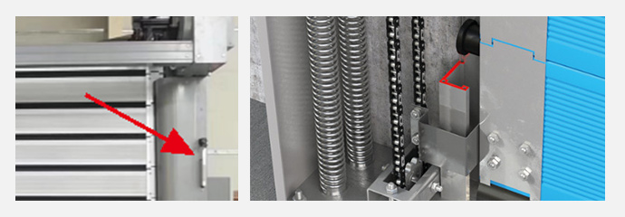 硬質(zhì)快速門(mén)整體外觀(guān);采用寶鋼鍍鋅板經(jīng)激光切割、數(shù)控折彎而成的成型的渦輪系統(tǒng)、導(dǎo)軌系統(tǒng)、防護(hù)外罩,長(zhǎng)久不生銹,外部美觀(guān)、防塵、輕松清潔傳動(dòng)系統(tǒng);一體式的傳動(dòng)系統(tǒng),使得門(mén)體兩側(cè)均勻受力,整體運(yùn)行通暢。
